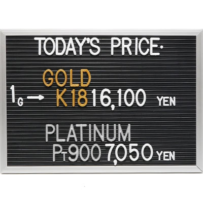 本日の金・プラチナ(K18・Pt900)の1グラムあたりのお買取り価格です。