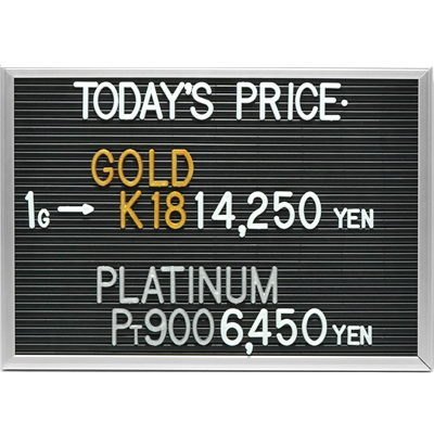 本日の金・プラチナ(K18・Pt900)の1グラムあたりのお買取り価格です。