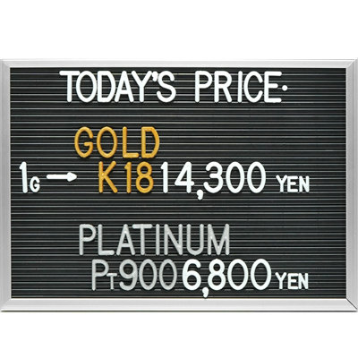 本日の金・プラチナ(K18・Pt900)の1グラムあたりのお買取り価格です。