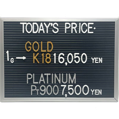 本日の金・プラチナ(K18・Pt900)の1グラムあたりのお買取り価格です。