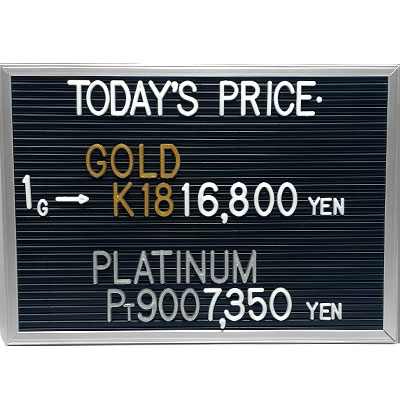 本日の金・プラチナ(K18・Pt900)の1グラムあたりのお買取り価格です。