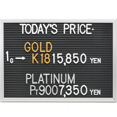本日の金・プラチナ(K18・Pt900)の1グラムあたりのお買取り価格です。