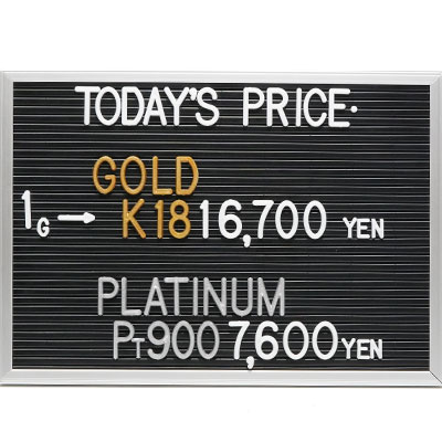 本日の金・プラチナ(K18・Pt900)の1グラムあたりのお買取り価格です。