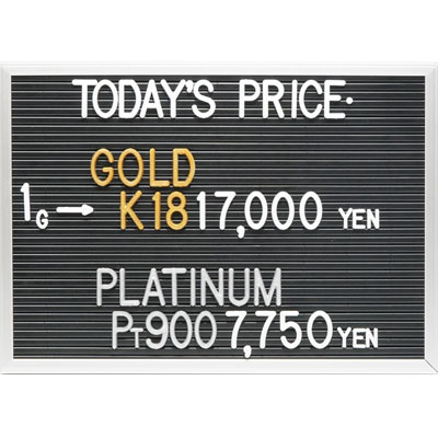 本日の金・プラチナ(K18・Pt900)の1グラムあたりのお買取り価格です。