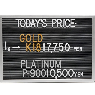 本日の金・プラチナ(K18・Pt900)の1グラムあたりのお買取り価格です。