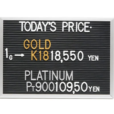 本日の金・プラチナ(K18・Pt900)の1グラムあたりのお買取り価格です。