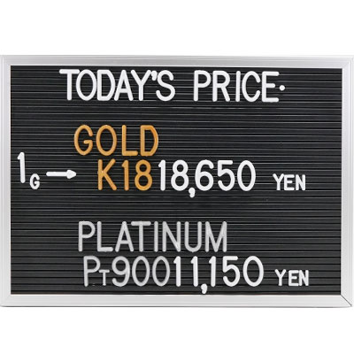 本日の金・プラチナ(K18・Pt900)の1グラムあたりのお買取り価格です。