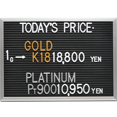 本日の金・プラチナ(K18・Pt900)の1グラムあたりのお買取り価格です。