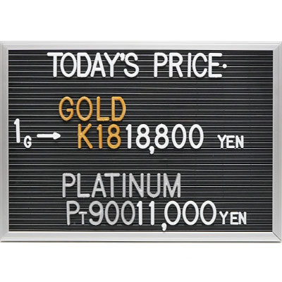 本日の金・プラチナ(K18・Pt900)の1グラムあたりのお買取り価格です。