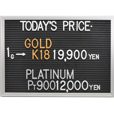 本日の金・プラチナ(K18・Pt900)の1グラムあたりのお買取り価格です。