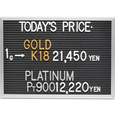本日の金・プラチナ(K18・Pt900)の1グラムあたりのお買取り価格です。