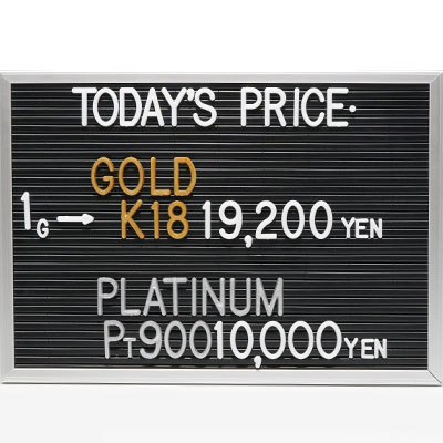 本日の金・プラチナ(K18・Pt900)の1グラムあたりのお買取り価格です。