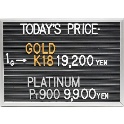 本日の金・プラチナ(K18・Pt900)の1グラムあたりのお買取り価格です。