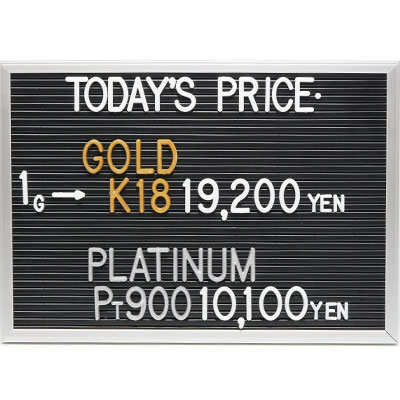 本日の金・プラチナ(K18・Pt900)の1グラムあたりのお買取り価格です。