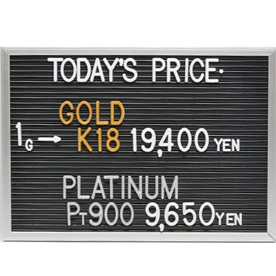 本日の金・プラチナ(K18・Pt900)の1グラムあたりのお買取り価格です。