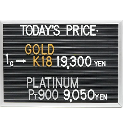 本日の金・プラチナ(K18・Pt900)の1グラムあたりのお買取り価格です。