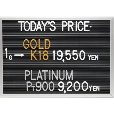本日の金・プラチナ(K18・Pt900)の1グラムあたりのお買取り価格です。