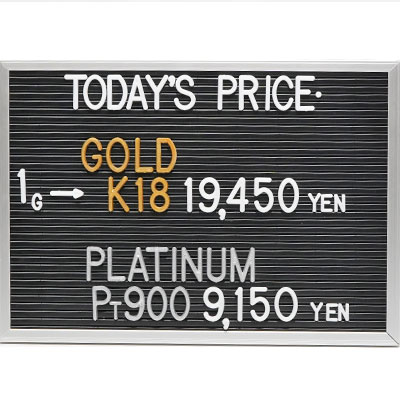 本日の金・プラチナ(K18・Pt900)の1グラムあたりのお買取り価格です。