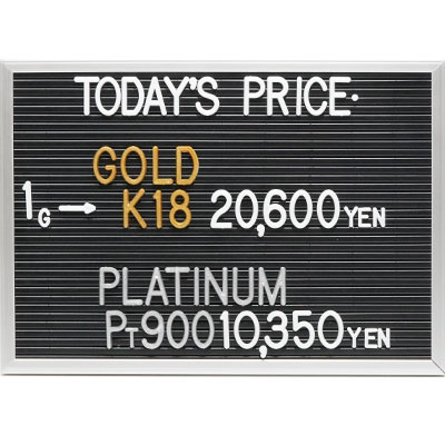本日の金・プラチナ(K18・Pt900)の1グラムあたりのお買取り価格です。