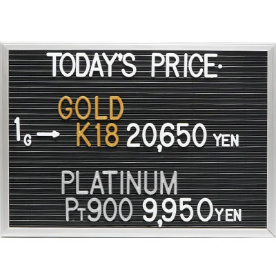 本日の金・プラチナ(K18・Pt900)の1グラムあたりのお買取り価格です。