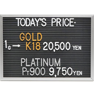 本日の金・プラチナ(K18・Pt900)の1グラムあたりのお買取り価格です。