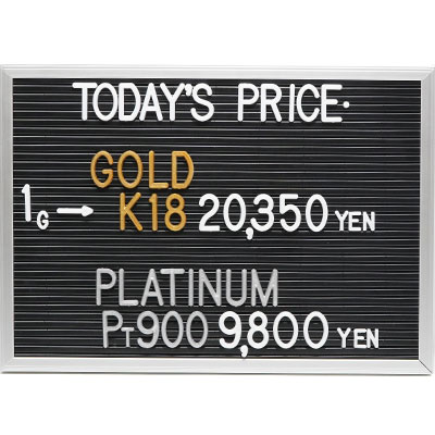 本日の金・プラチナ(K18・Pt900)の1グラムあたりのお買取り価格です。