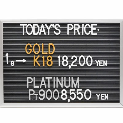 本日の金・プラチナ(K18・Pt900)の1グラムあたりのお買取り価格です。
