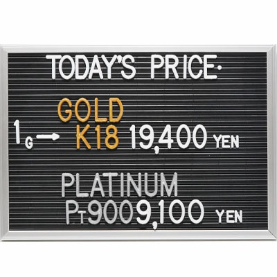 本日の金・プラチナ(K18・Pt900)の1グラムあたりのお買取り価格です。