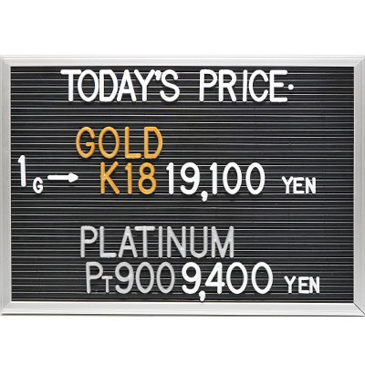 本日の金・プラチナ(K18・Pt900)の1グラムあたりのお買取り価格です。