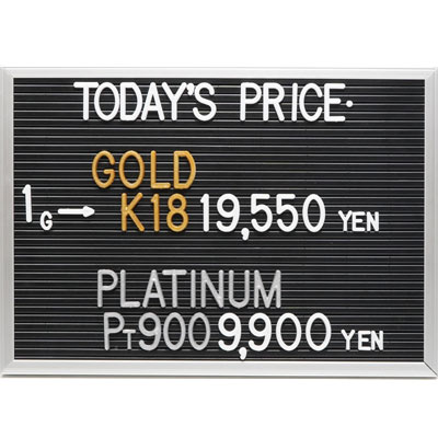 本日の金・プラチナ(K18・Pt900)の1グラムあたりのお買取り価格です。