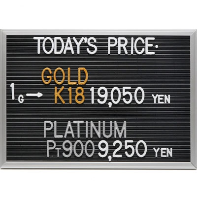 本日の金・プラチナ(K18・Pt900)の1グラムあたりのお買取り価格です。