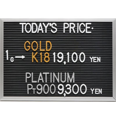 本日の金・プラチナ(K18・Pt900)の1グラムあたりのお買取り価格です。