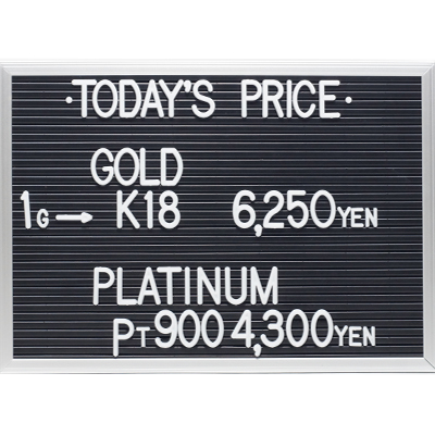 本日の金・プラチナ(K18・Pt900)の1グラムあたりのお買取り価格です。