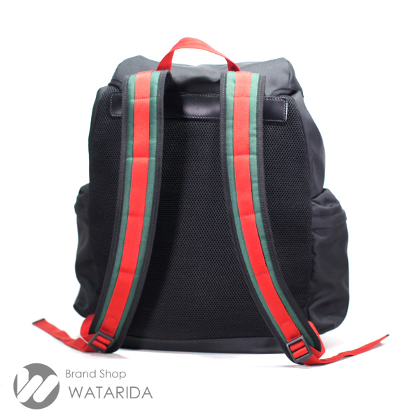 【グッチ テクノキャンバス バックパック キャットヘッド 429037 K1N1X 1072】ブラックのナイロンを使用した大型のバックパック。サイドのファスナーポケットやフラップのポケットが使いやすい一品。
