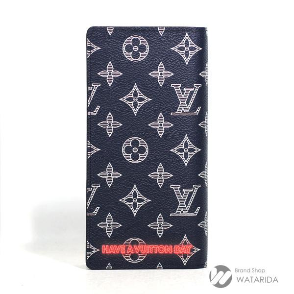 【ルイヴィトン ポルトフォイユ・ブラザ M62893】大きなLVロゴが上下反転したデザインの一品。深いネイビーカラーのモノグラム・インク キャンバスが◎。艶消しの金具やファスナーエンドのLVロゴが特徴的。ぜひともこの機会に!!