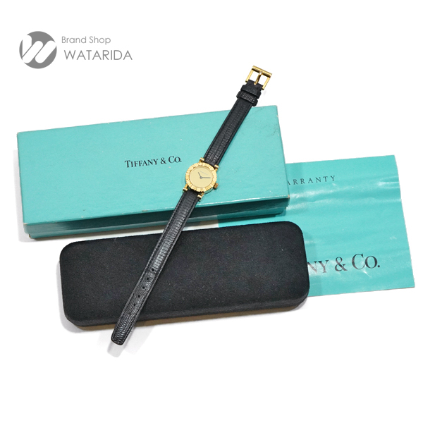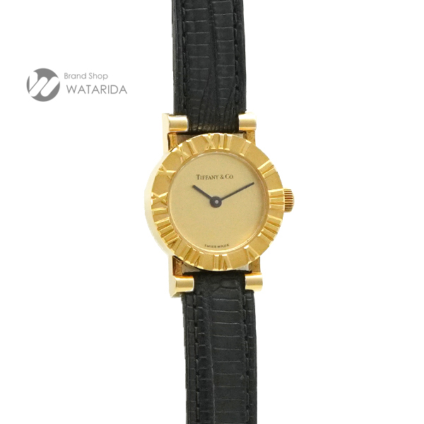 【ティファニー アトラス ミニ ラウンド Qz S0630】ベゼルにローマ数字をあしらったYG製の一品。リザードレザーとラグの形状が印象的なモデルです。是非ともこの機会に!!