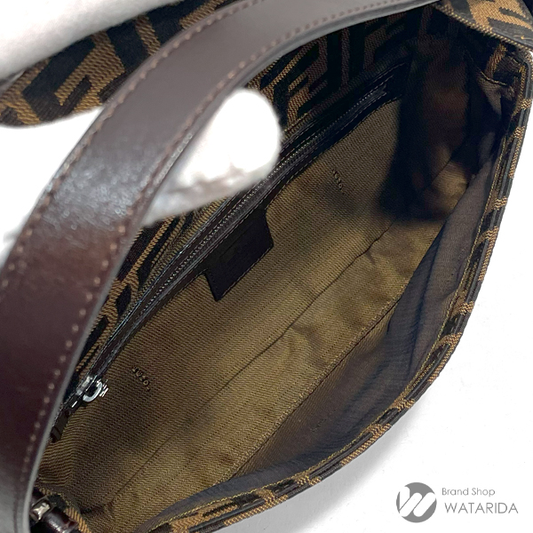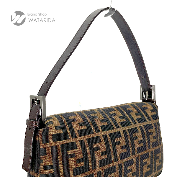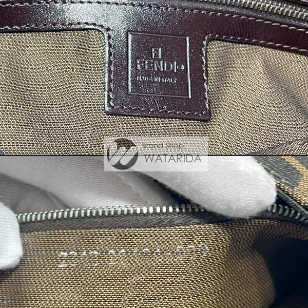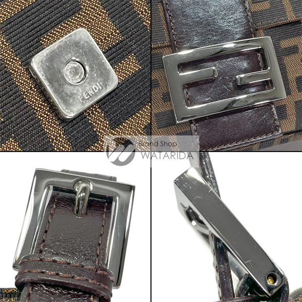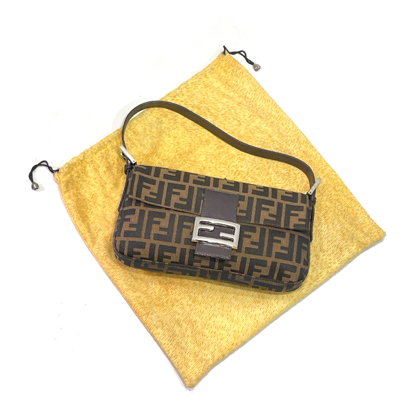 Fが2つアナグラムになったズッカ柄のオーソドックスなバケット。金具はシルバーです。金具の小傷・持ち手のスレ・ポケット内側の印字のスレ等は少々あるものの気持ちよくおつかいいただける状態の一品です。保存袋が付属いたします。